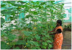 Vegetables play a major role in Indian agriculture by providing food, nutritional and economic security and more importantly, producing higher returns per unit area. India is the largest producer of vegetable crops next to China. Despite its vegetable production in the country is much less than the requirement if balanced diet is provided to every individual. The present production of 162 million tons is to be raised to 196.5 million tons by 2020. There are different ways and means to achieve this target. e.g. bringing additional area under vegetable crops, using hybrid seeds, use of improved agro- techniques. Another potential approach is promotion of protected high value vegetable cultivation. Moreover, under the hot- and – humid tropical conditions of Odisha, vegetable cultivation is affected in summers and in monsoon. Considering the potential of vegetables in the country, protected cultivation of high- value vegetables has been promoted among the farmwomen to add their source of income. Horticulture can be economical viable for the poor farmers also if protected cultivation is made an integral part of their farming system.
